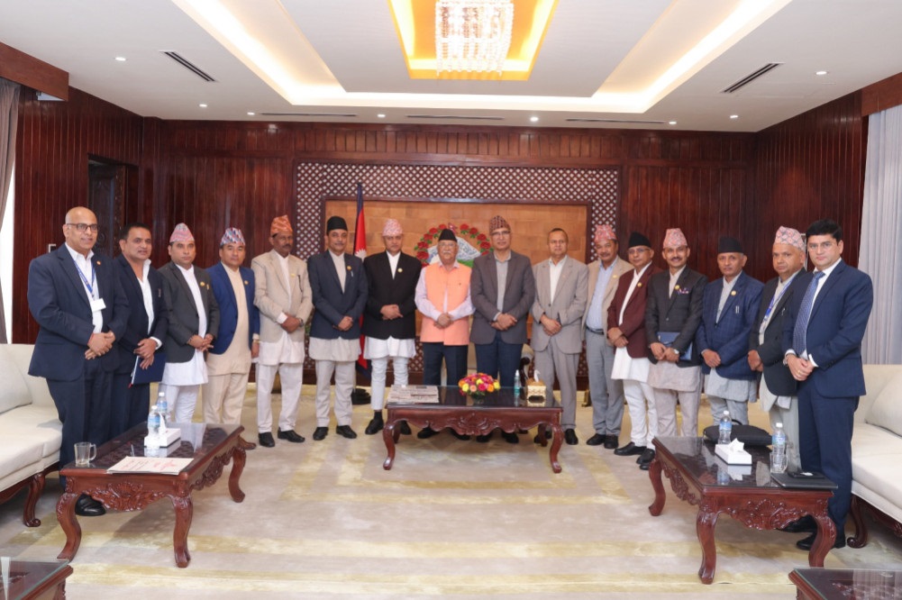 काठमाडौँ । प्रधानमन्त्री केपी शर्मा ओलीले पूर्वाधार विकासको क्रमसँगै उत्पादन र रोजगारी वृद्धितर्फ ध्यान केन्द्रित गर्न आग्रह गरेका छन् । आइतबार लुम्बिनी प्रदेश सरकारका मुख्यमन्त्री चेतनारायण आचार्यसहित मन्त्रीहरुसँगको भेटमा प्रधानमन्त्री ओलीले उपयुक्त माटोमा उन्नत जातका बाली लगाएर कृषिलाई औद्योगीकरण गर्दै त्यसको बजार विस्तार गर्न सुझाव दिए ।