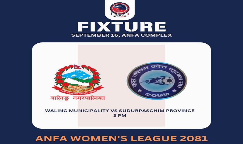 काठमाणडौ । एन्फा महिला लिग फुटबलमा आज स्याङ्जाको वालिङ नगरपालिका र सुदूरपश्चिम प्रदेशबीच खेल हुँदैछ । ललितपुरको सातदोबाटोमा रहेको एन्फा कम्प्लेक्सको मैदानमा हुने खेल दिउँसो ३ बजे शुरू हुनेछ ।