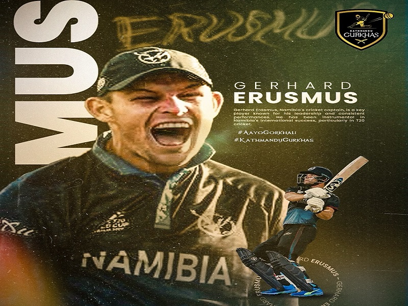 काठमाण्डौ । नामिबियाको क्रिकेट टोलीका कप्तान जेहार्ड एरास्मसले काठमाण्डौ गुर्खाजबाट नेपाल प्रिमियर लिग (एनपीएल) खेल्ने भएका छन् । काठमाण्डौले दोस्रो विदेशी खेलाडीका रुपमा अलराउन्डर एरास्मसलाई टोलीमा अनुबन्ध गरेको सामाजिक सञ्जालमार्फत जनाएको छ ।