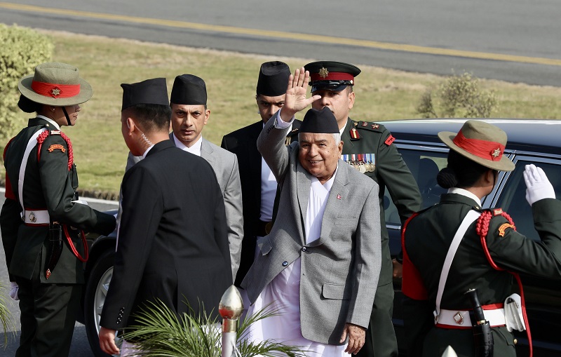 राष्ट्रपति पौडललाई त्रिभुवन अन्तर्राष्ट्रिय विमानस्थलमा उपराष्ट्रपति, प्रधानमन्त्री, सभामुख, राष्ट्रिय सभाअध्यक्ष, उपसभामुखलगायत उच्च पदस्थ अधिकारीले स्वागत गर्नुभयो ।
