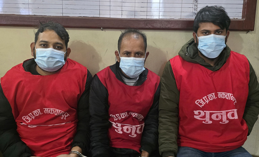 उनीहरूलाई जिल्ला प्रहरी कार्यालय मकवानपुरको टोलीले पक्राउ गरेको हो । मकवानपुरका एसपी विश्वराज खड्काका अनुसार काठमाडौंबाट हेडौटातर्फ आउँदै गरेको बा। प्र। ०३–००१ ज ०७६५ नम्बरको इभी माइक्रोबाट उनीहरुलाई पक्राउ गरिएको हो ।