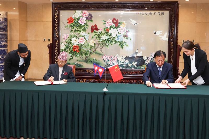 काठमाण्डौ । नेपाल र चीन सरकारबीच फ्रेमवर्क अफ बेल्ट एन्ड रोड कोअपरेशनमा हस्ताक्षर भएको छ । बेइजिङमा नेपाल र चीनका उच्च अधिकारीहरूबीच चलेको दुई दिने अनौपचारिक वार्तापछि बीआरआई सहकार्य फ्रेमवर्कमा हस्ताक्षर भएको हो ।