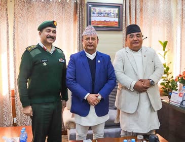उर्जामन्त्री खड्काले आज रक्षामन्त्री मानविर राईलाई भेटेर खाँदबारी–किमाथांका सडक निर्माणको गति सुस्त भएकोमा असन्तुष्टि व्यक्त गर्नुभयो । उर्जामन्त्री खड्काले सडक तत्काल सञ्चालनमा ल्याउन रक्षामन्त्रीको ध्यानाकर्षण गर्नुभयो । उक्त सडक रक्षा मन्त्रालयअन्तर्गत रहेको नेपाली सेनाले निर्माण गरिरहेको छ ।