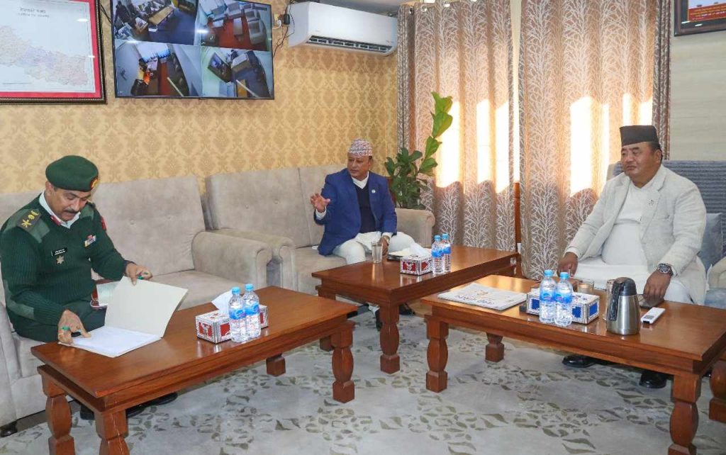 भेटमा रक्षामन्त्री राईले नेपाली सेनाद्धारा निर्माण भइरहेको उक्त सडक मुलुक विकासमा महत्वपूर्ण पूर्वाधारको रुपमा रहने भएको हुँदा निर्माणमा संलग्न सेनालाई गुणस्तरीय रुपमा यथाशीघ्र निर्माण सम्पन्न गरी सञ्चालनमा ल्याउन आवश्यक निर्देशन दिनुभयो । दुई मन्त्रीको भेटमा रक्षामन्त्री राईले पूर्वको किमाथांका नाका, पश्चिमको हिल्सा नाका र केरुङ नाकालाई सरकारले प्राथमिकतामा राखेको जानकारी गराउनुभयो ।