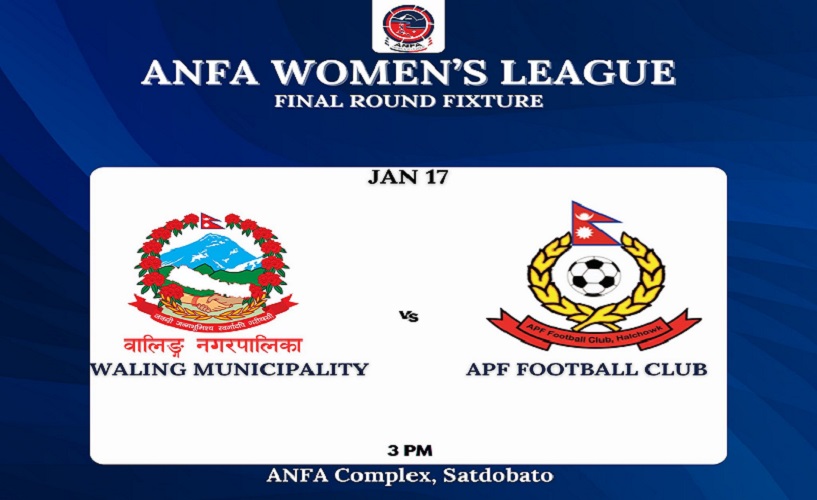 काठमाण्डौ । एन्फा महिला लिग फुटबलको दोस्रो चरणको खेलमा आज शीर्ष स्थानको सशस्त्र प्रहरी बलको एपीएफ क्लब र अन्तिम स्थानमा रहेको स्याङ्जाको वालिङ नगरपालिका खेल्दैछन् । खेल एन्फा कम्प्लेक्स सातदोबाटोमा दिउँसो ३ बजे शुरू हुने अखिल नेपाल फुटबल सङ्घ एन्फाले जनाएको छ ।