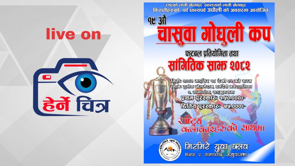 खाँदबारी । संखुवासभाको धर्मदेवी नगरपालिका २ तामाफोकमा लामो समयदेखि सञ्चालन हुँदै आएको गोधुली कप मंसिर १८ गतेदेखि सञ्चालन हुने भएको छ । मिर्मिरे क्लबले आयोजना गर्दै आएको चासुवा गोधुली कप खुल्ला पुरुष फुटबल प्रतियोगिताको यो १९ औं संस्करण हो ।