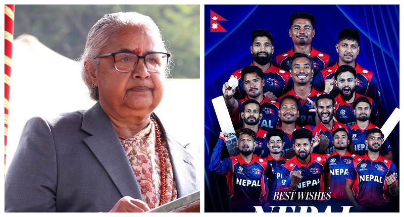 काठमाण्डौ । १०औँ संस्करणको आईसीसी टी–२० विश्वकपमा आज इंग्ल्यान्डसँग ऐतिहासिक खेल खेल्न लागेको नेपाली टोलीलाई प्रधानमन्त्री सुशीला कार्कीले जीतको शुभकामना व्यक्त गर्नुभएको छ ।