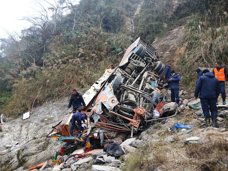 यस्तै दुर्घटनामा २५ जना घाइते भएका छन् । घाइतेमध्ये १४ जनाको काठमाण्डौको राष्ट्रिय ट्रमा सेन्टर, १० जनाको काठमाण्डौकै कलङ्कीमा रहेको नेशनल मेडिकल कलेज र एक जनाको धादिङको मलेखुमा रहेको टिचिङ अस्पतालमा उपचार भइरहेको धादिङका प्रहरी नायब उपरीक्षक प्रकाश दाहालले बताउनुभयो ।