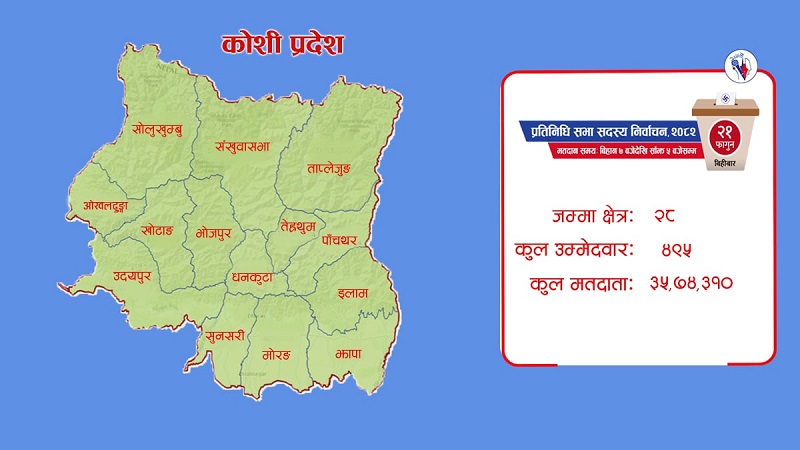 झापा ५ मा केपी शर्मा ओली र बालेन शाहको उम्मेदवारीसँगै कोशी प्रदेश देशकै सबैभन्दा चासोको चुनावी भूगोल बनेको छ । १४ जिल्ला, २८ प्रतिनिधिसभा क्षेत्र र ३५ लाखभन्दा धेरै मतदाता रहेको यस प्रदेशको विशेषता यसको विशिष्ठ भूगोल र मिस्रित जनसंख्या हो । पूर्वी देशको सबैभन्दा होचो केचनाकवलदेखि संसारकै अग्लो सगरमाथा शिखरसम्म फैलिएको कोशी प्रदेशको अर्को विशेषता जातीय र जनजातीय विविधता सहितको जनसंख्या हो ।