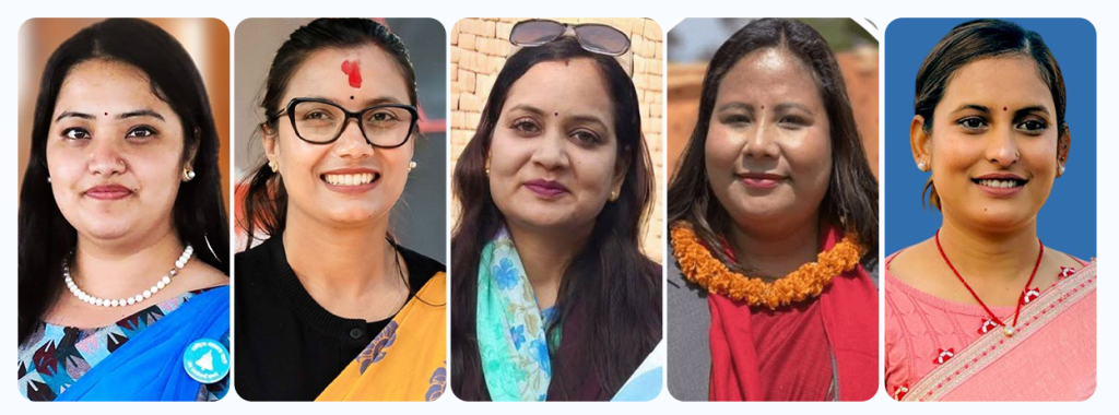 काठमाडौं । प्रधानमन्त्री बालेन्द्र शाह (बालेन) नेतृत्वको १५ सदस्यीय मन्त्रिपरिषद्मा पाँच जना मन्त्री महिला छन् । कानून, न्याय तथा संसदीय मामिला मन्त्रीमा सोविता गौतम, सामान्य प्रशासन मन्त्रीमा प्रतिभा रावल, महिला, बालबालिका मन्त्रीमा सीता वादी, स्वास्थ्य तथा जनसंख्या मन्त्रीमा निशा मेहता र कृषि मन्त्रीमा गीता चौधरी नियुक्त भएका छन् ।